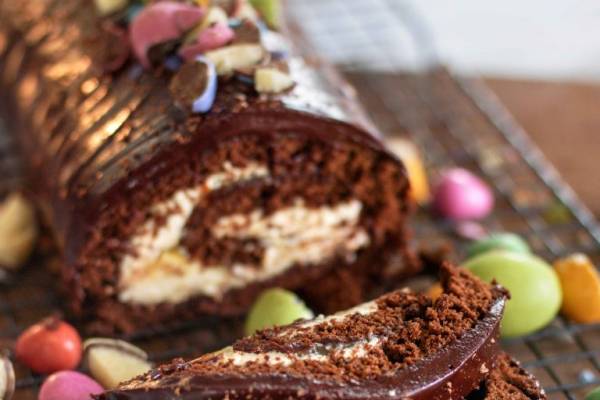 Sjokoladerullekake – påskepyntet