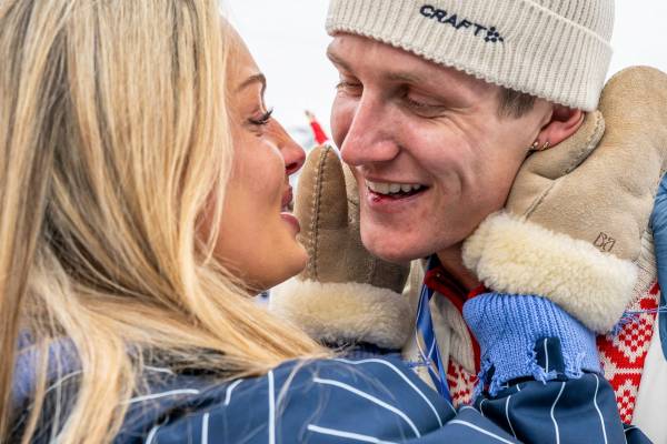 Feiret med kyss etter det historiske parløpet. (22:24)