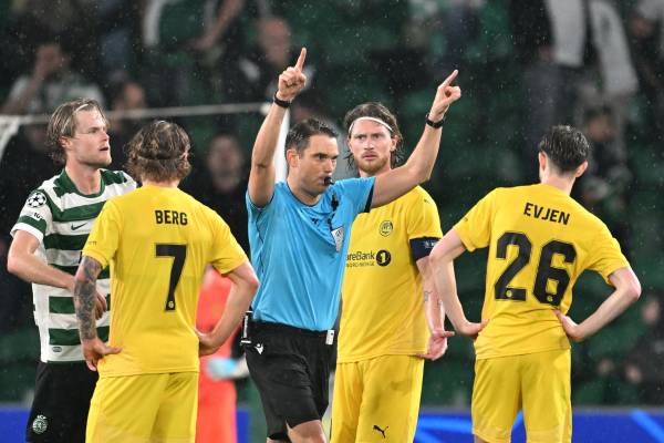 Og Glimt-stopper Jostein Gundersen er tydelig på at dommeren kunne tatt seg en litt nøyere titt på situasjonen som førte til Sportings 3–0-mål. (00:06)